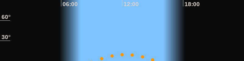 | Höchster Stand (Kulmination) | 12:17 Uhr (h = 9,4°) |