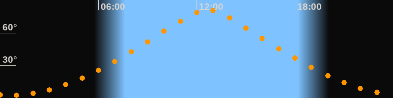 | Höchster Stand (Kulmination) | 12:39 Uhr (h = 81,3°) |