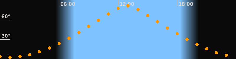| Höchster Stand (Kulmination) | 12:53 Uhr (h = 81,3°) |