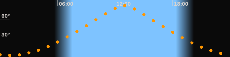 | Höchster Stand (Kulmination) | 12:55 Uhr (h = 81,3°) |