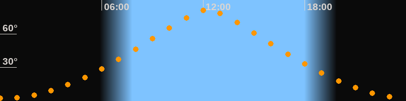 | Höchster Stand (Kulmination) | 12:15 Uhr (h = 81,3°) |