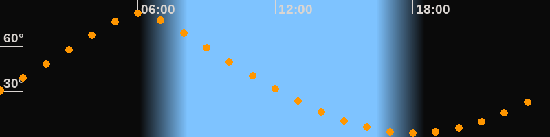 | Höchster Stand (Kulmination) | 06:04 Uhr (h = 81,3°) |