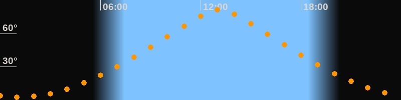 | Höchster Stand (Kulmination) | 13:06 Uhr (h = 81,3°) |