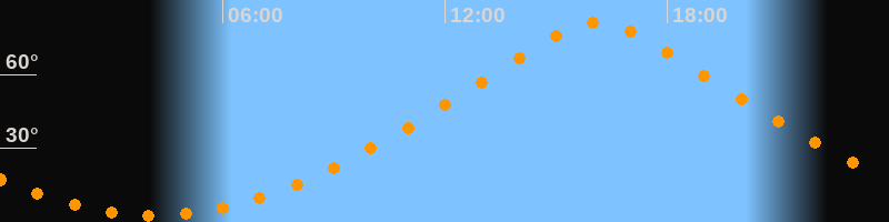 | Höchster Stand (Kulmination) | 16:08 Uhr (h = 81,3°) |