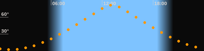 | Höchster Stand (Kulmination) | 13:11 Uhr (h = 81,3°) |
