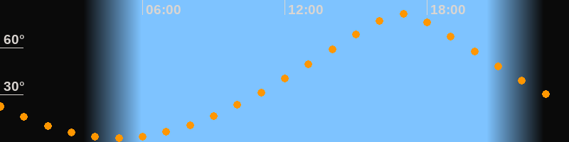 | Höchster Stand (Kulmination) | 16:55 Uhr (h = 81,3°) |