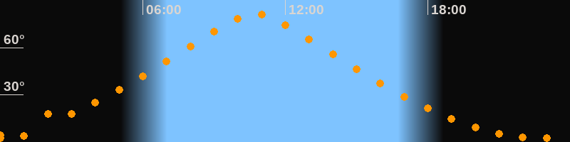 | Höchster Stand (Kulmination) | 10:44 Uhr (h = 81,3°) |