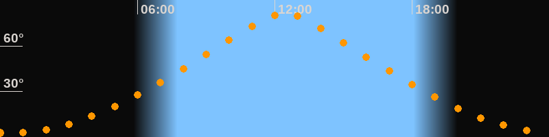 | Höchster Stand (Kulmination) | 12:25 Uhr (h = 81,3°) |