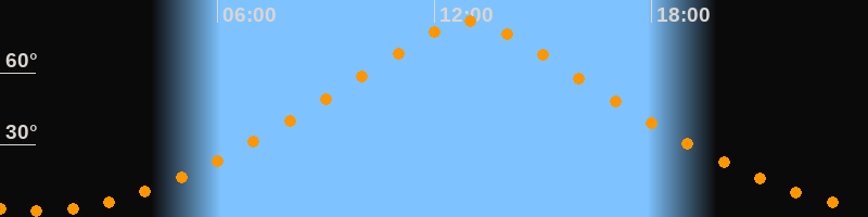 | Höchster Stand (Kulmination) | 12:57 Uhr (h = 81,3°) |