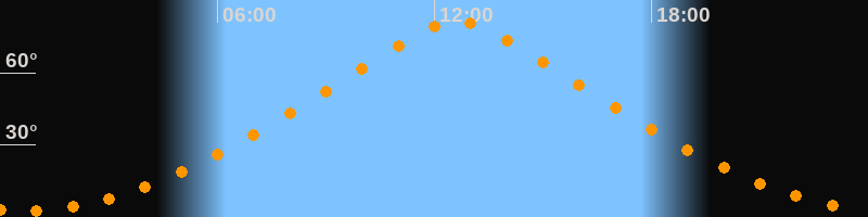 | Höchster Stand (Kulmination) | 12:37 Uhr (h = 81,3°) |