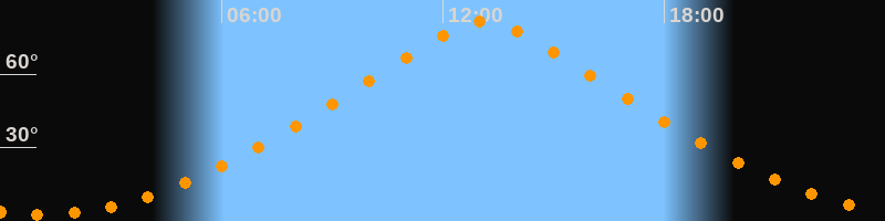 | Höchster Stand (Kulmination) | 13:06 Uhr (h = 81,3°) |