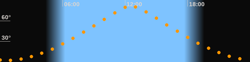 | Höchster Stand (Kulmination) | 12:34 Uhr (h = 81,3°) |