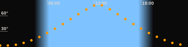 | Höchster Stand (Kulmination) | 12:30 Uhr (h = 81,3°) |