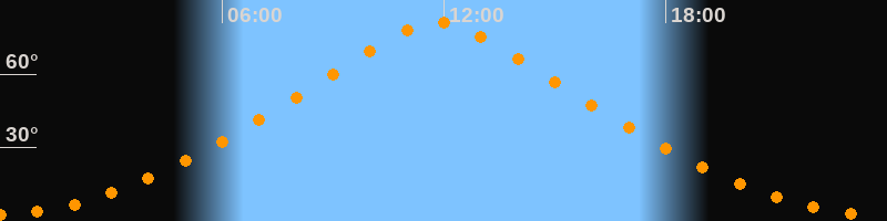| Höchster Stand (Kulmination) | 11:49 Uhr (h = 81,3°) |