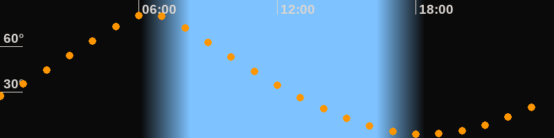 | Höchster Stand (Kulmination) | 06:26 Uhr (h = 81,3°) |