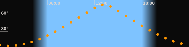 | Höchster Stand (Kulmination) | 13:08 Uhr (h = 81,3°) |
