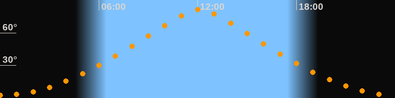 | Höchster Stand (Kulmination) | 12:06 Uhr (h = 81,3°) |