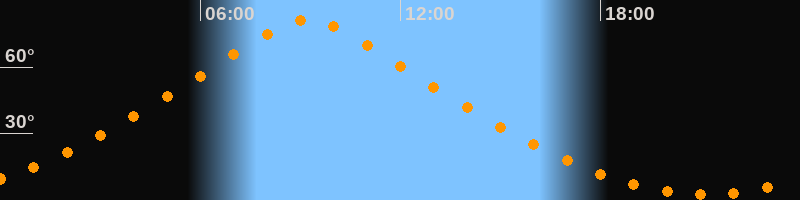 | Höchster Stand (Kulmination) | 09:14 Uhr (h = 81,3°) |