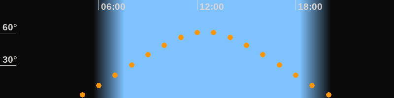 Höchster Stand (Kulmination)12:30 Uhr (h = 61°)