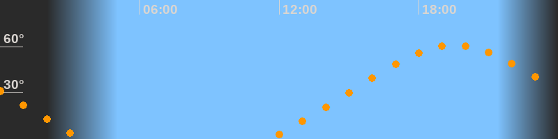 Höchster Stand (Kulmination)19:32 Uhr (h = 61°)