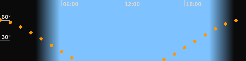 Höchster Stand (Kulmination)23:39 Uhr (h = 61°)