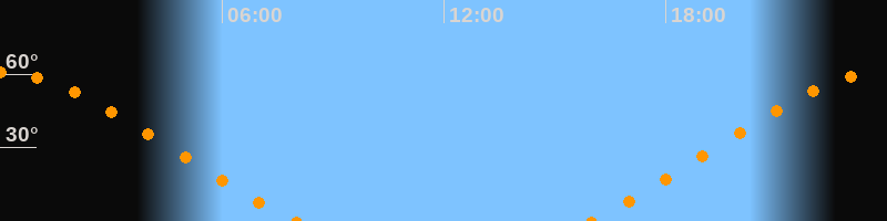 Höchster Stand (Kulmination)23:56 Uhr (h = 61°)