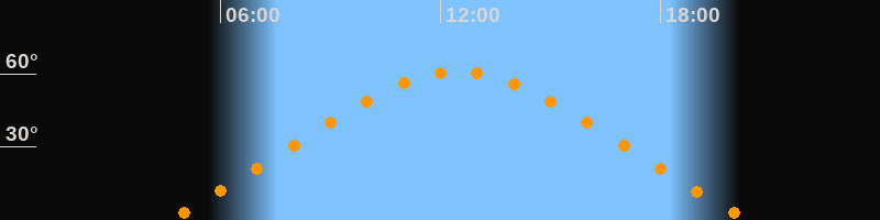 Höchster Stand (Kulmination)12:29 Uhr (h = 61°)