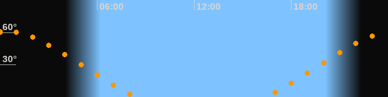Höchster Stand (Kulmination)00:22 Uhr (h = 61°)
