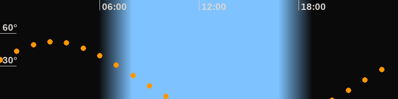 Höchster Stand (Kulmination)03:14 Uhr (h = 52,3°)