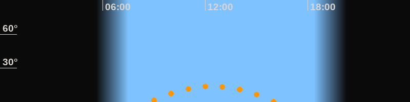 | Aufgang | 08:40 Uhr im Südosten (αAz = 131,5°) |