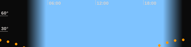 | Aufgang | 19:28 Uhr im Südosten (αAz = 131,5°) |
