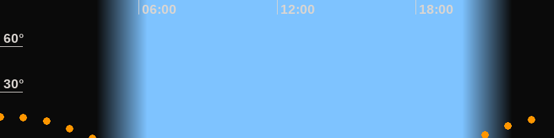| Untergang | 04:06 Uhr im Südwesten (αAz = 228,5°) |