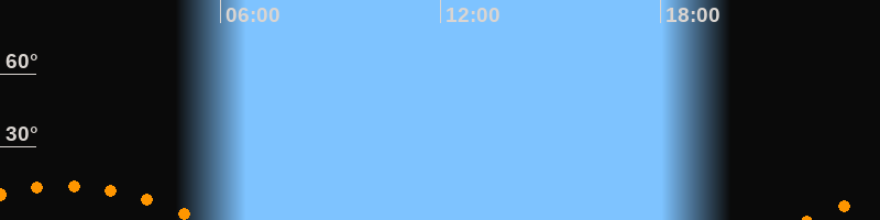 | Untergang | 05:29 Uhr im Südwesten (αAz = 228,5°) |