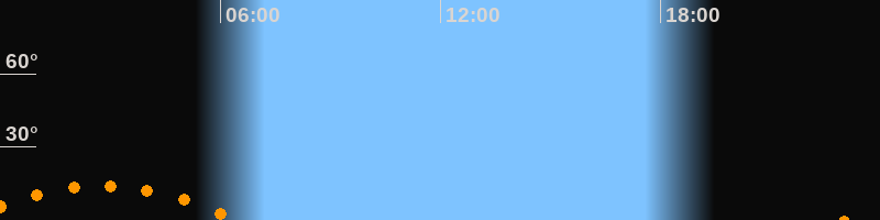 | Untergang | 06:29 Uhr im Südwesten (αAz = 228,5°) |