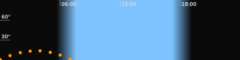 | Untergang | 07:17 Uhr im Südwesten (αAz = 228,5°) |