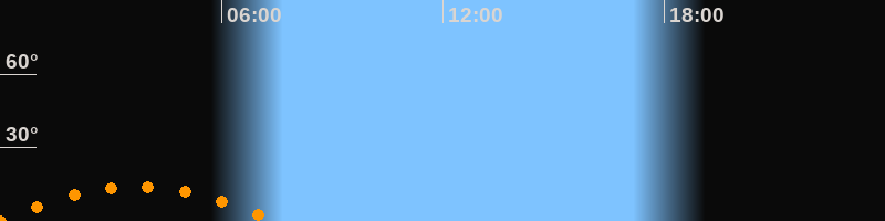 | Untergang | 07:27 Uhr im Südwesten (αAz = 228,5°) |