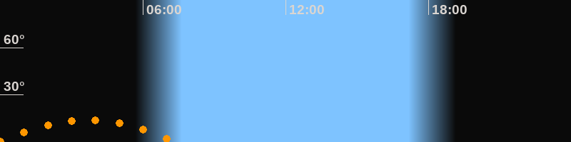 | Aufgang | 23:52 Uhr im Südosten (αAz = 131,5°) |