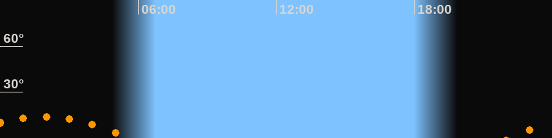 | Untergang | 05:37 Uhr im Südwesten (αAz = 228,5°) |