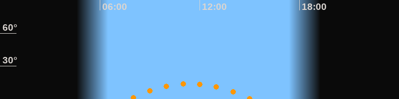 | Höchster Stand (Kulmination) | 11:25 Uhr (h = 14°) |