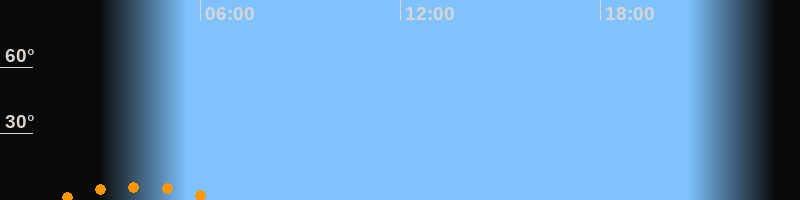 Aufgang01:29 Uhr im Südosten (αAz = 148,6°)