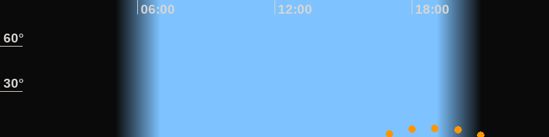 Aufgang16:20 Uhr im Südosten (αAz = 148,6°)