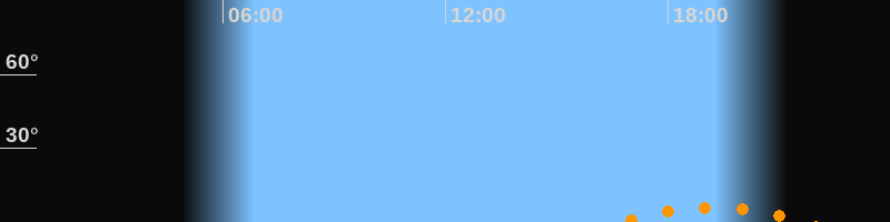 Aufgang16:39 Uhr im Südosten (αAz = 148,6°)