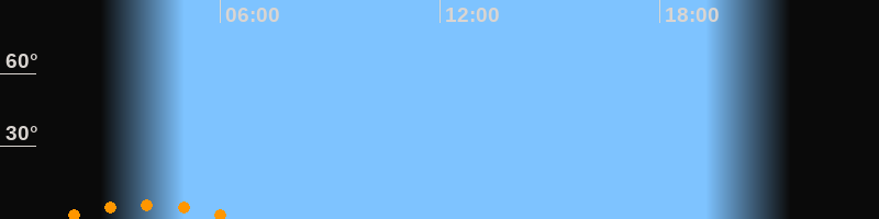 Aufgang01:25 Uhr im Südosten (αAz = 148,6°)