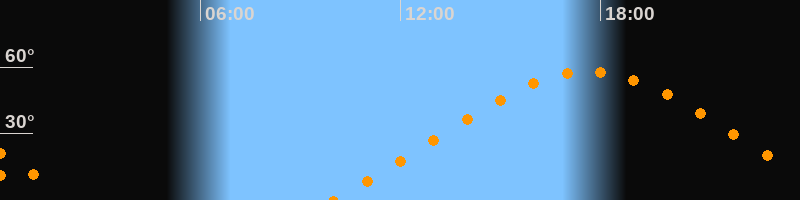 Höchster Stand (Kulmination)17:38 Uhr (h = 58,1°)
