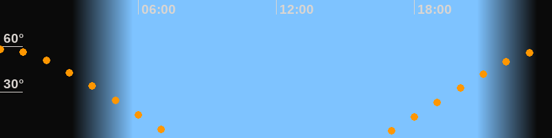 Höchster Stand (Kulmination)00:01 Uhr (h = 58,1°)