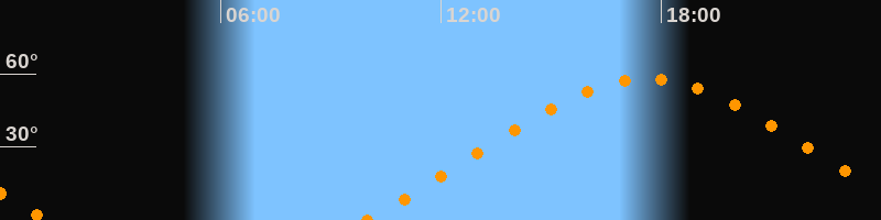 Höchster Stand (Kulmination)17:36 Uhr (h = 58,1°)