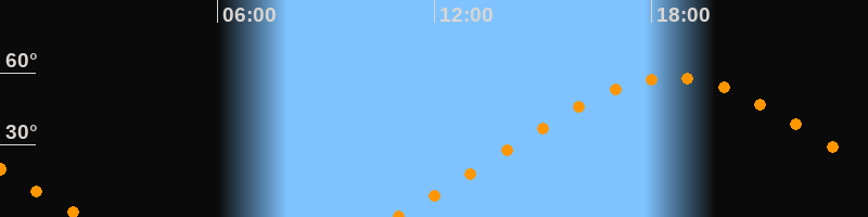 Höchster Stand (Kulmination)18:34 Uhr (h = 58,1°)
