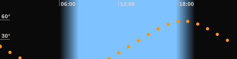 Höchster Stand (Kulmination)18:30 Uhr (h = 58,1°)