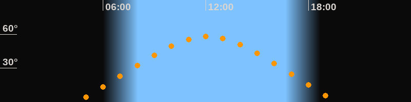 Höchster Stand (Kulmination)12:05 Uhr (h = 58,1°)
