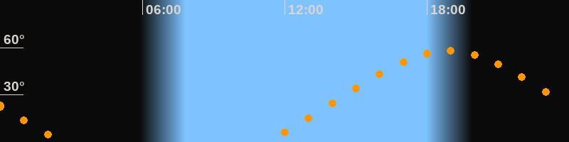 Höchster Stand (Kulmination)18:53 Uhr (h = 58,1°)